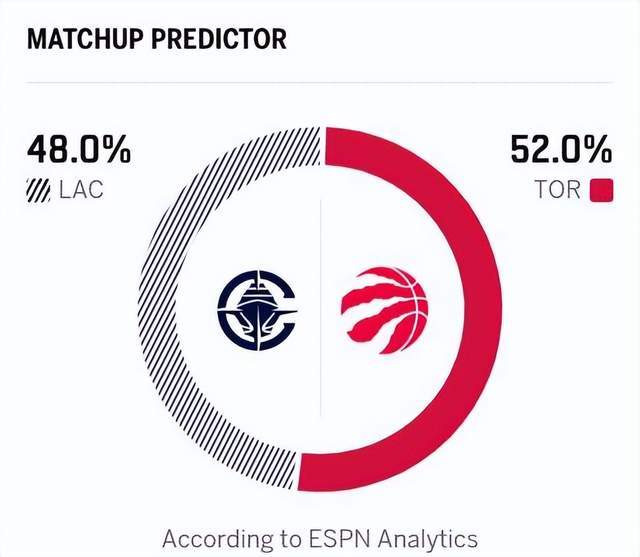 猛龙这边上一场比赛击败步行者,以25胜17负的战绩排在东部第四,猛龙本赛季的表现整体来说令人满意,三大锋线的冲击力很猛,也让球队的防守效率来到联盟第五,与此同时,猛龙近期在交易市场上尤其活跃,他们意图通过交易提升球队的上限,以便在季后赛走的更加长远。本场比赛由于伦纳德缺阵,柯林斯、小琼斯等人继续缺阵,祖巴茨复出,泰伦卢派出的首发为哈登、邓恩、祖巴茨、巴图姆、桑德斯;而猛龙这边巴雷特、奎克利缺阵,首发阵容为谢德、阿巴基、博伊尔斯、巴恩斯、英格拉姆。知名美媒ESPN预测此役快船胜率为48%,而猛龙的胜率则为52%。