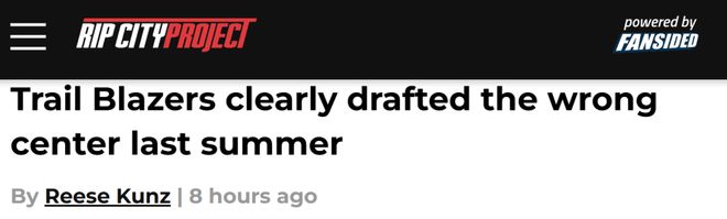 北京时间1月18日,过去两场G联赛,杨瀚森分别创下得分(22分)和篮板(17)新高,但回到开拓者,他还是难以进入轮换,并打出高质量的表现。这也让波特兰的一些媒体对他感到失望。今日,波特兰媒体Rip City Project撰文谈及开拓者的选秀决定,标题是《开拓者去年夏天显然选错了中锋》。以下是文章相关内容——