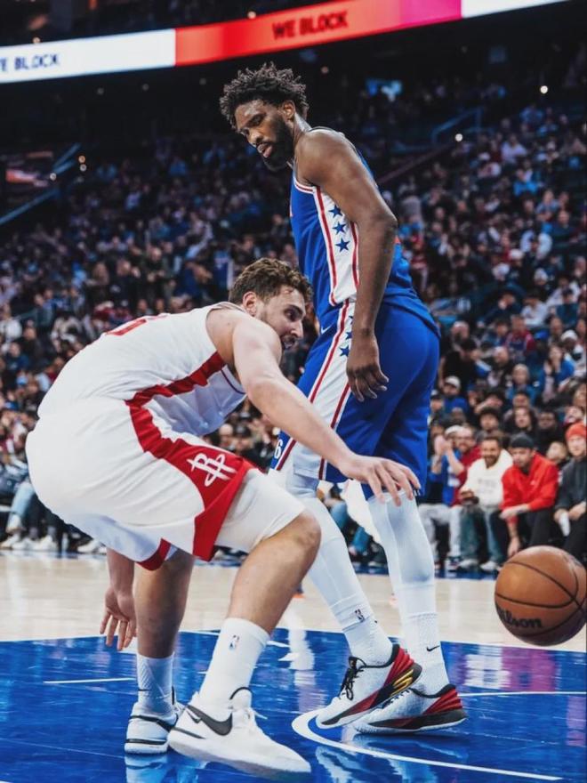 作为对比,火箭中锋申京此役出战37分33秒,投篮15中5,三分2中1,罚球7中2,得到13分8篮板7助攻2抢断2盖帽,正负值-18并列全场最低。恩比德正负值全场最高,申京正负值全场最低。光看这场比赛,申京被恩比德碾压了。