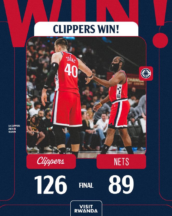 快船表现出色5人得分上双,哈登3记三分19分6篮板8助攻,莱昂纳德28分5篮板,科林斯18分5篮板3抢断,祖巴茨11分10篮板,米勒16分7篮板。