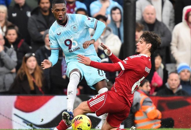 利物浦排出4231阵型。埃基蒂克顶在最前面。索博斯洛伊、维尔茨和加克波的进攻组合联袂出击。赫拉芬贝赫和琼斯组成双后腰。弗林蓬、科纳特、范戴克和凯尔凯兹4后卫首发出战。阿利松担任首发门将。利物浦首发阵容总身价6.43亿欧元,而伯恩利首发阵容总身价1.3亿欧元。