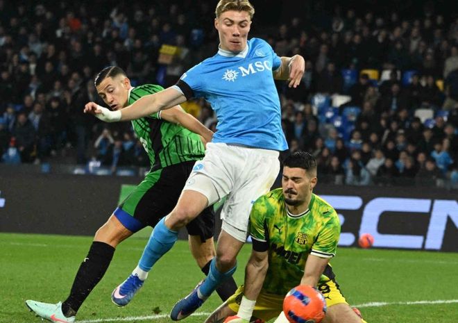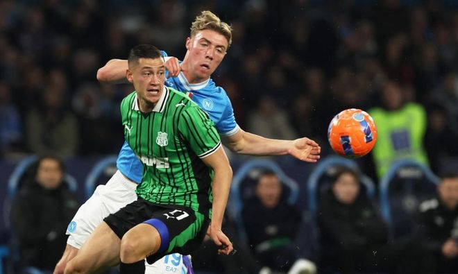 那不勒斯排出3421阵型。霍伊伦顶在最前面。韦尔加拉和埃尔马斯在他身后。迪洛伦佐、洛博特卡、麦卡利斯特和斯皮纳佐拉4中场联袂出击。比克马、拉赫马尼和胡安-热苏斯3后卫首发出战。瓦尼亚-米林科维奇-萨维奇担任首发门将。那不勒斯首发阵容总身价2亿欧元,而萨索洛首发阵容总身价8780万欧元。