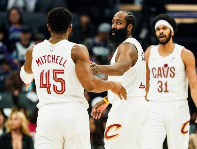 哈登开局阶段手感冰冷,前几分钟几乎没有得分进账,显得有些拘谨。毕竟这是他和新队友的第一次真正同场竞技,缺少磨合在所难免。然而,哈登的伟大之处在于,他从不慌乱。下半场开始,他逐渐找到节奏,传球视野打开,挡拆配合愈发流畅。到了第四节,哈登彻底接管比赛:连续命中关键三分,屡次杀入内线造成杀伤,单节独得15分,与米切尔联手打出一波决定性的18-5攻击波,直接锁定胜局。米切尔全场砍下35分,成为另一位英雄,两人末节的爆发堪称天作之合。
