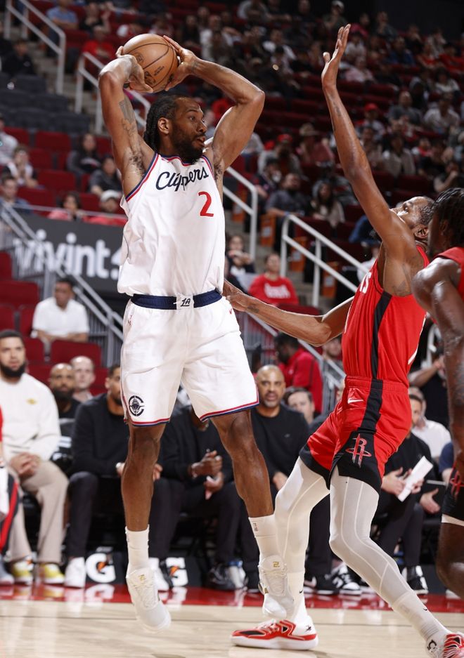这是两队背靠背的第二场,背靠背G1时快船为了备战这场G2提前5分42秒投降让主力们休息,而火箭主力都打满了全场,毕竟快船第三阵容打得比第一阵容更好,从体能方面来看快船还更好一些,可34岁的伦纳德与37岁的杜兰特开场都连连打铁,这两位老将还是受到背靠背的影响,首节小卡4中0拿2分,首节KD3中0拿0分。